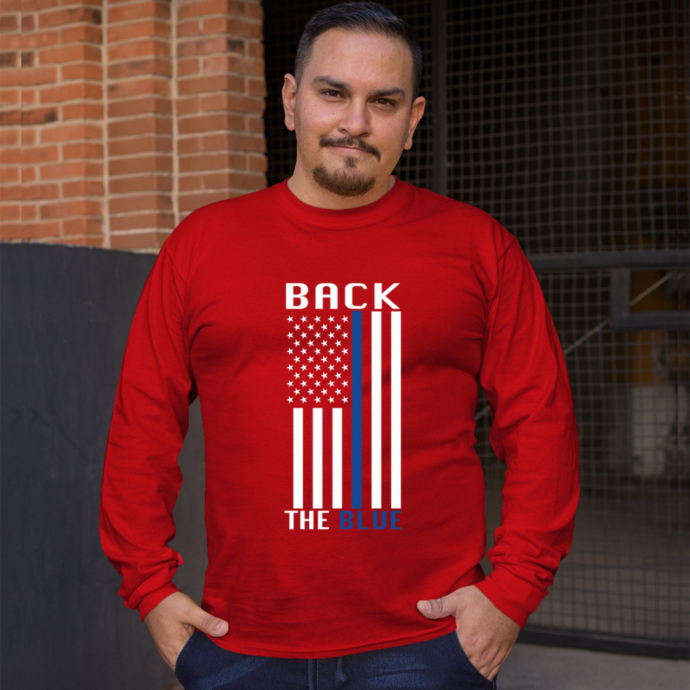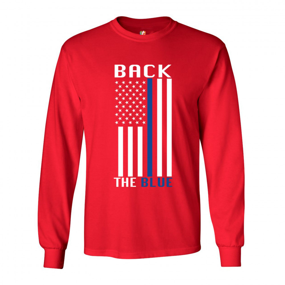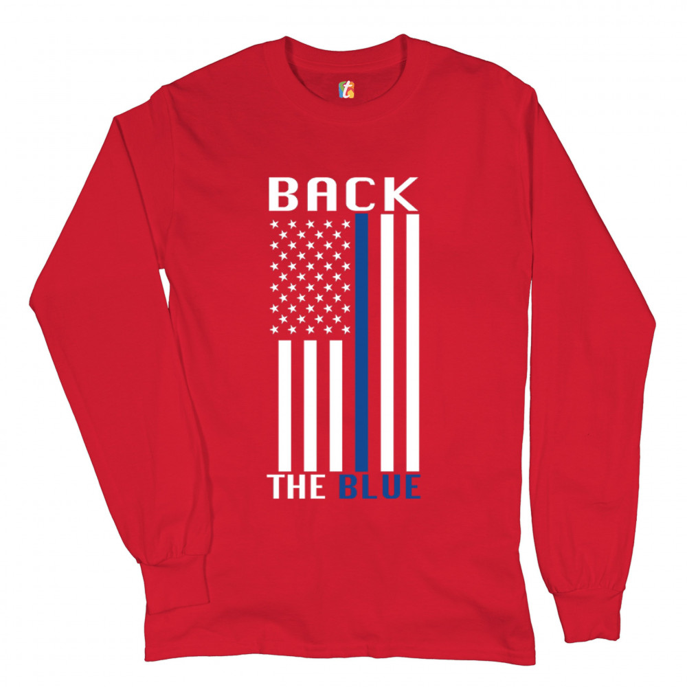 BACK THE BLUE AMERICAN FLAG long sleeve t-shirt police law enforcement red