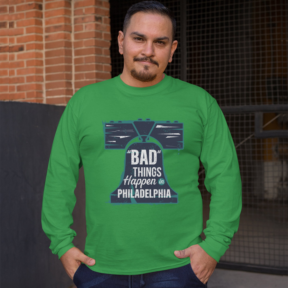 BAD THINGS HAPPEN IN PHILADELPHIA long sleeve t-shirt 2020 election debate green