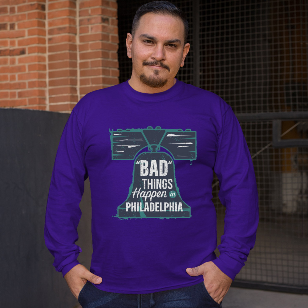 BAD THINGS HAPPEN IN PHILADELPHIA long sleeve t-shirt 2020 election debate purple