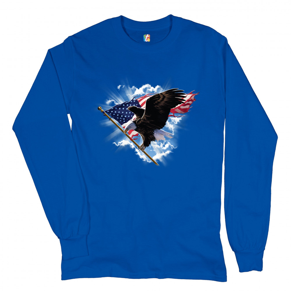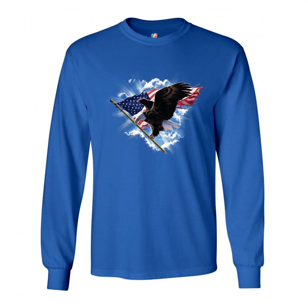 BALD EAGLE CARRYING THE AMERICAN FLAG long sleeve t-shirt 4th of july patriotic royal blue