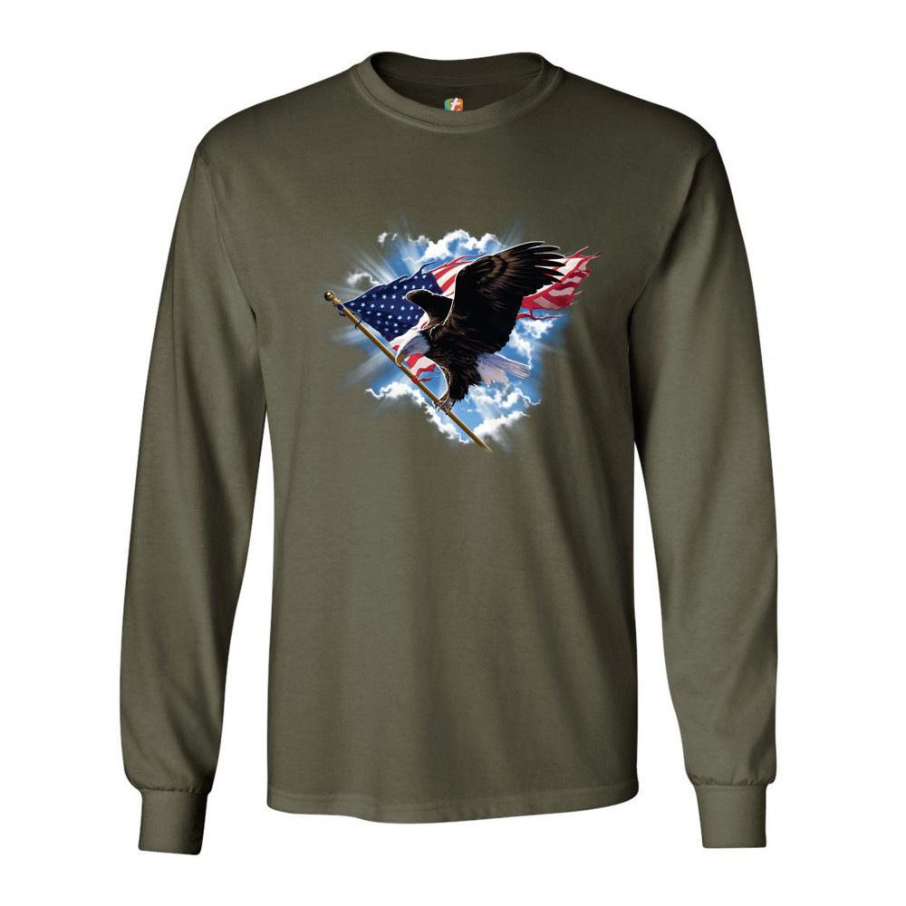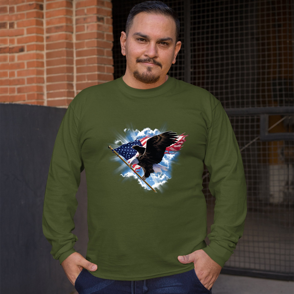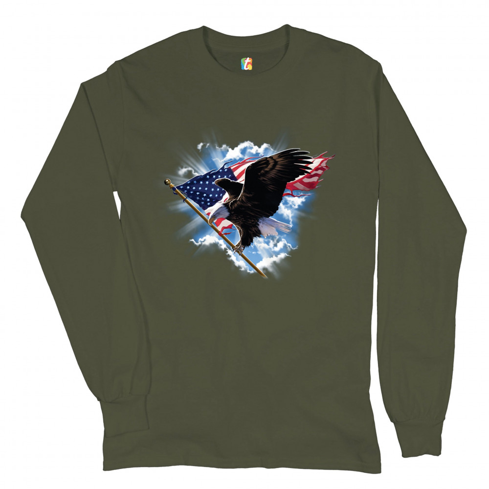 BALD EAGLE CARRYING THE AMERICAN FLAG long sleeve t-shirt 4th of july patriotic military green