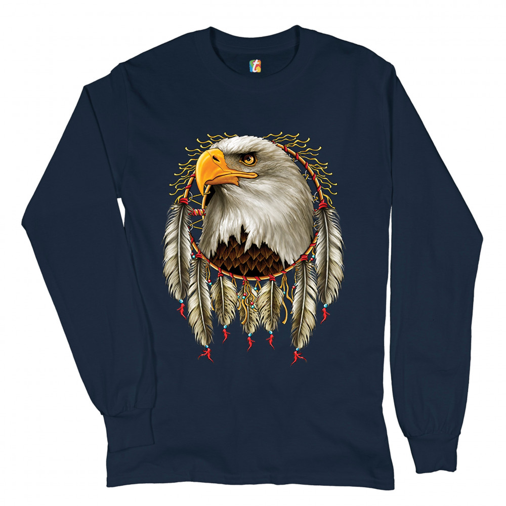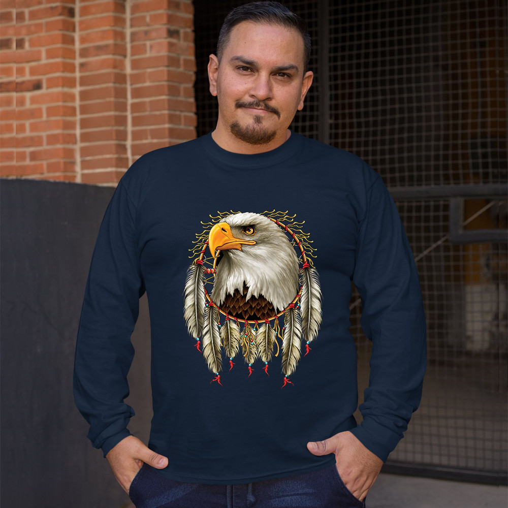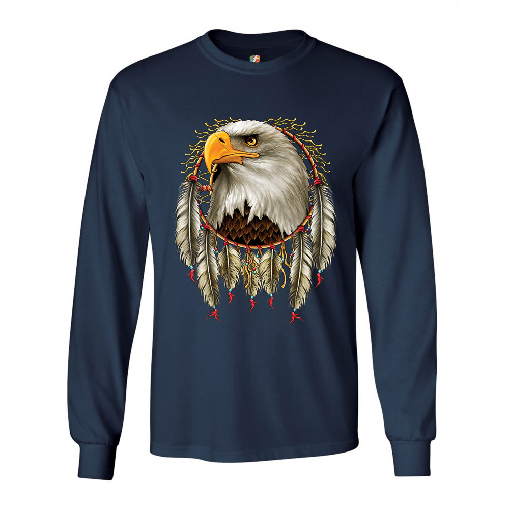 BALD EAGLE DREAMCATCHER long sleeve t-shirt indigenous native american heritage navy blue