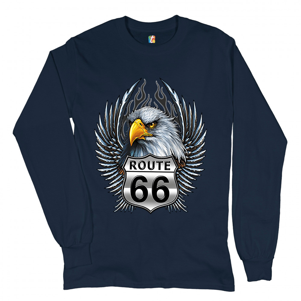 BALD EAGLE ROUTE 66 ROAD SIGN long sleeve t-shirt live to ride born to be wild navy blue