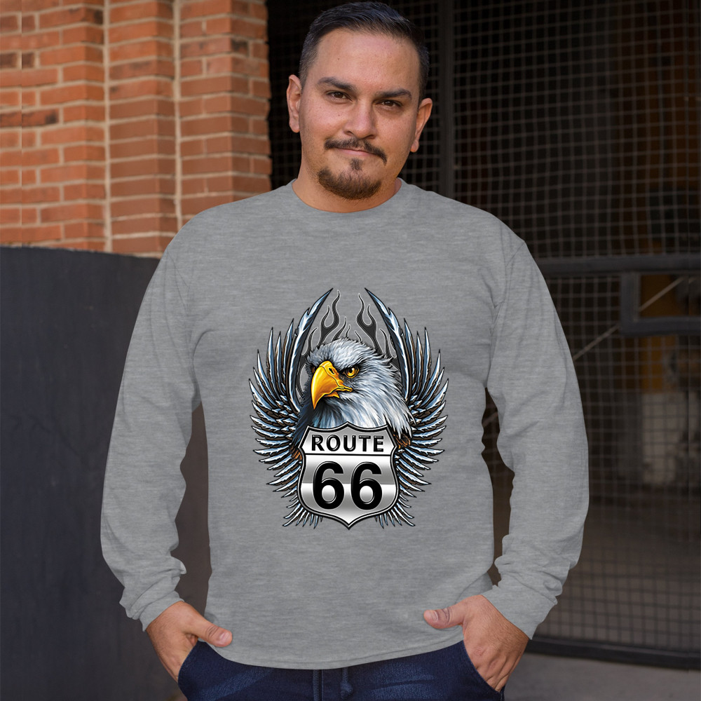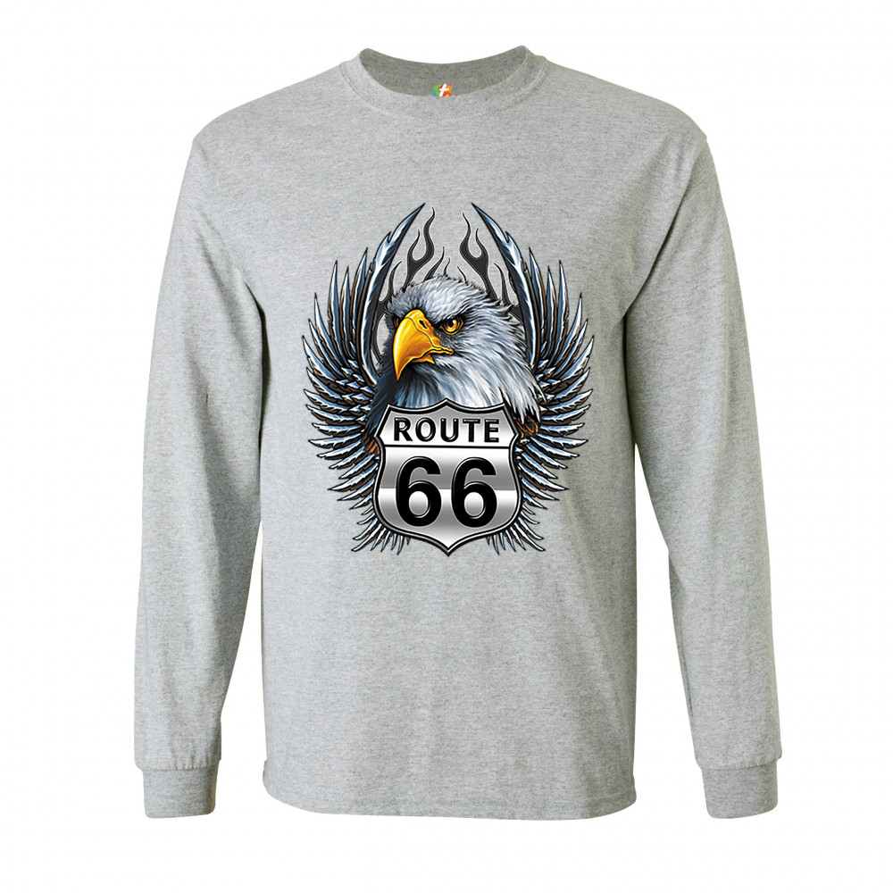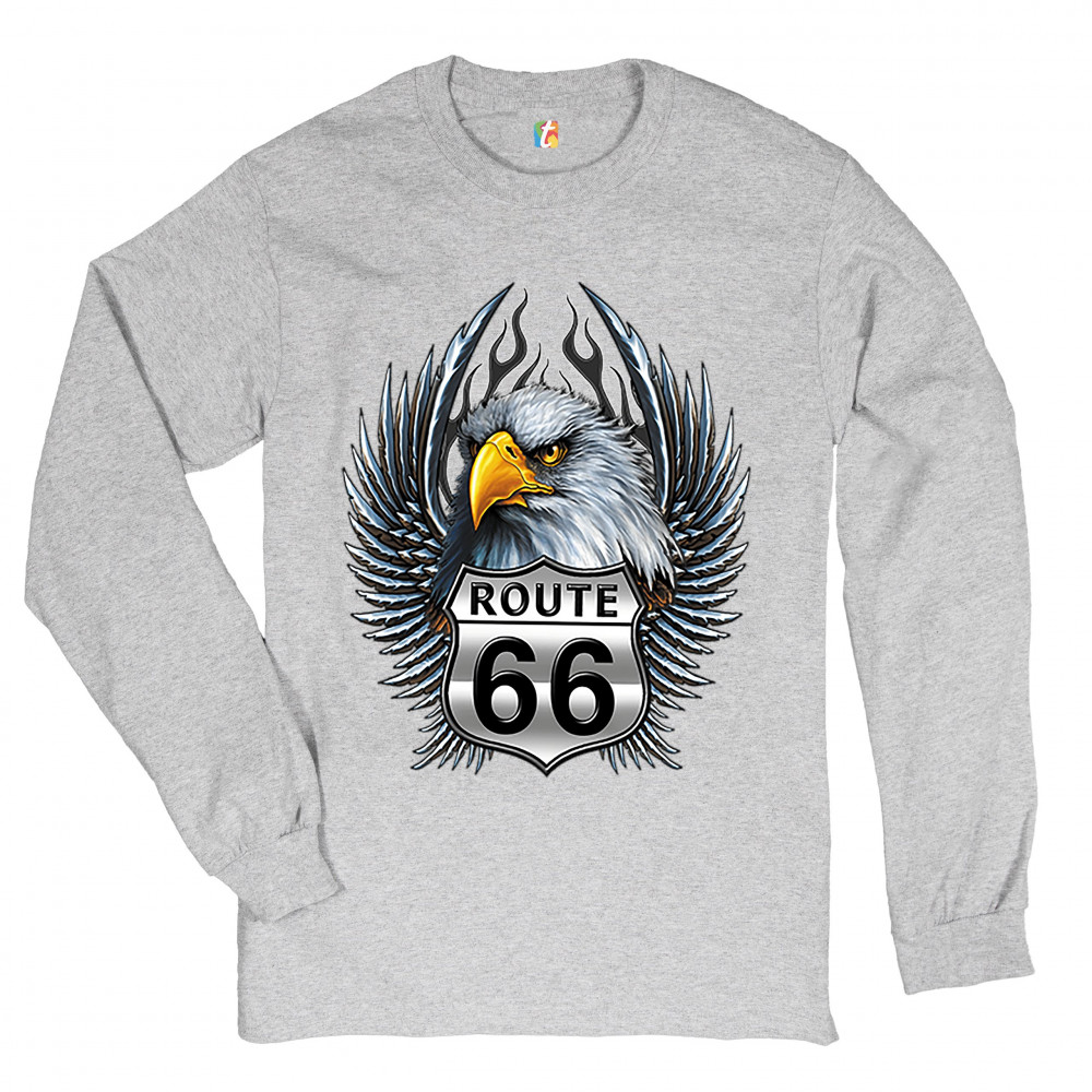 BALD EAGLE ROUTE 66 ROAD SIGN long sleeve t-shirt live to ride born to be wild gray