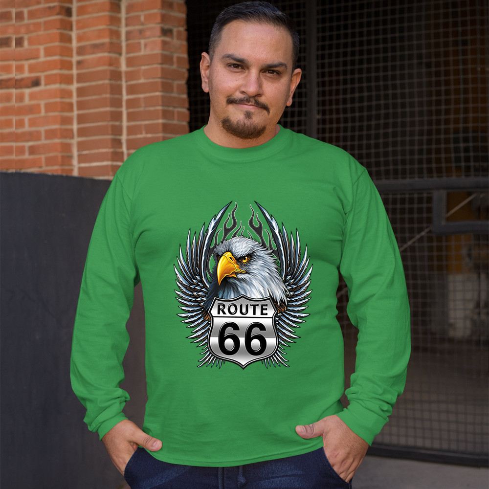 BALD EAGLE ROUTE 66 ROAD SIGN long sleeve t-shirt live to ride born to be wild green