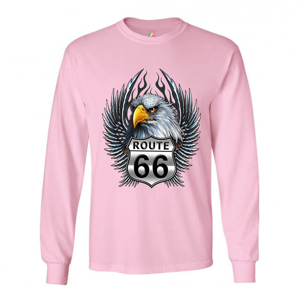 BALD EAGLE ROUTE 66 ROAD SIGN long sleeve t-shirt live to ride born to be wild pink