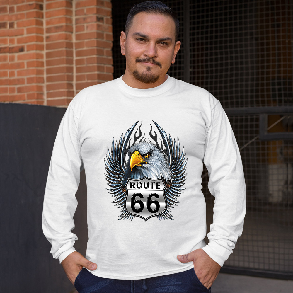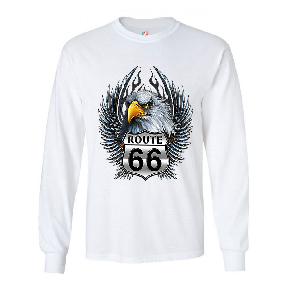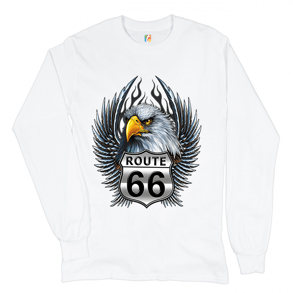 BALD EAGLE ROUTE 66 ROAD SIGN long sleeve t-shirt live to ride born to be wild white