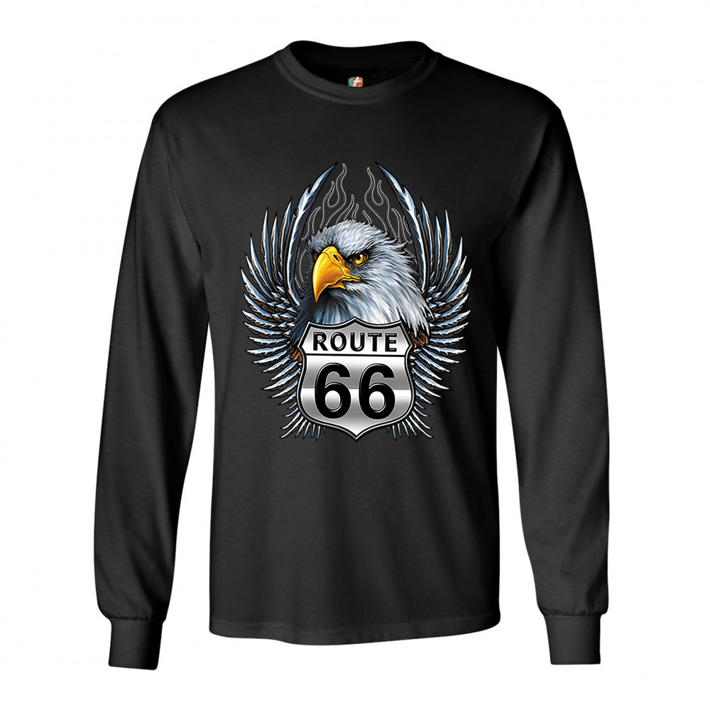 BALD EAGLE ROUTE 66 ROAD SIGN long sleeve t-shirt live to ride born to be wild black