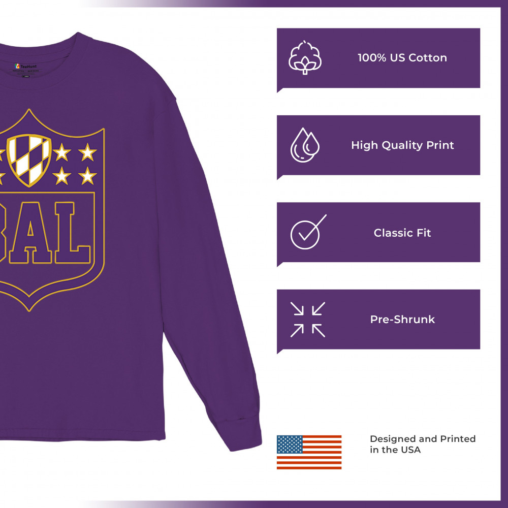 Bold BAL shield design for Baltimore football fans. Vintage sports shirt, collegiate style, and perfect Game Day Baltimore tee.