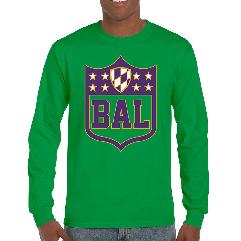 Celebrate your Baltimore pride with this bold BAL shield design. Perfect for football season, this Baltimore athletic shirt blends retro Baltimore football shirt style with collegiate energy. From tailgate party Baltimore tees to vintage BAL sports shirts, it’s built for fans who thrive on touchdown vibes, football culture, and Baltimore city pride. A shield logo Baltimore shirt every fan will love.