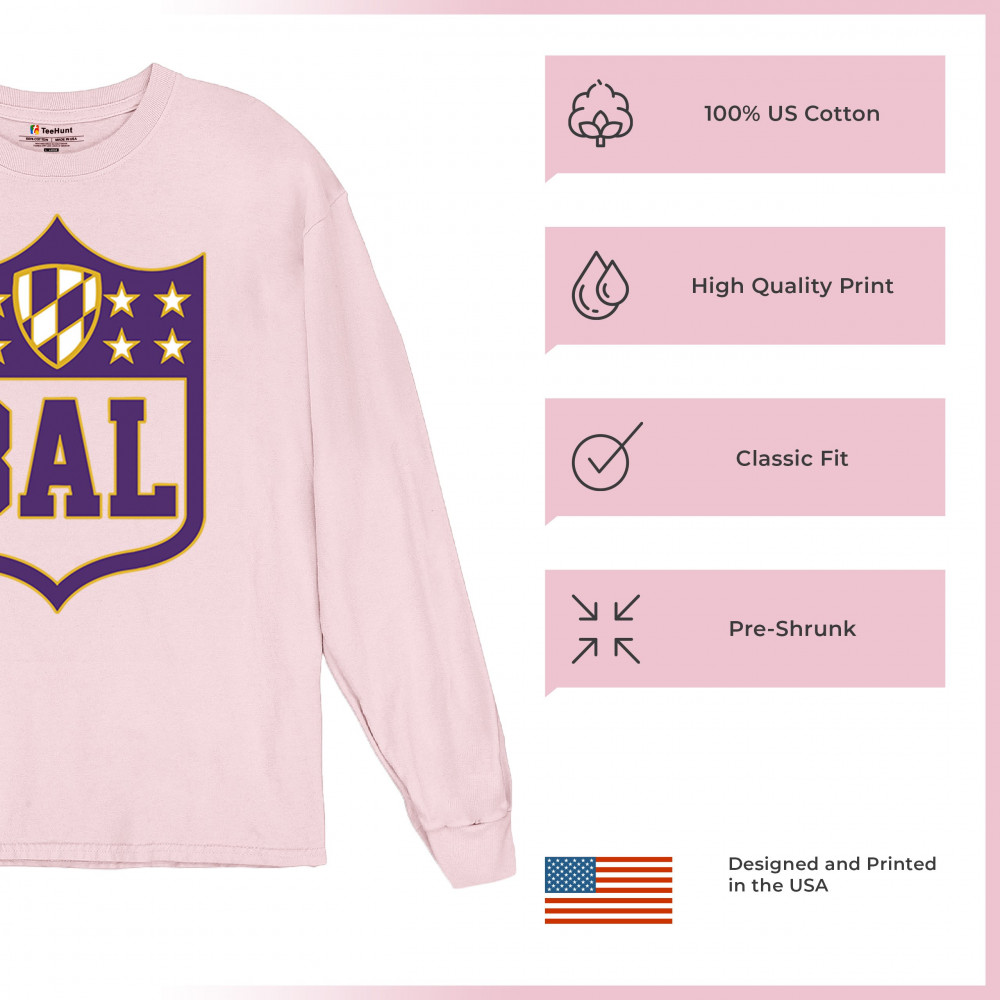 Celebrate your Baltimore pride with this bold BAL shield design. Perfect for football season, this Baltimore athletic shirt blends retro Baltimore football shirt style with collegiate energy. From tailgate party Baltimore tees to vintage BAL sports shirts, it’s built for fans who thrive on touchdown vibes, football culture, and Baltimore city pride. A shield logo Baltimore shirt every fan will love.