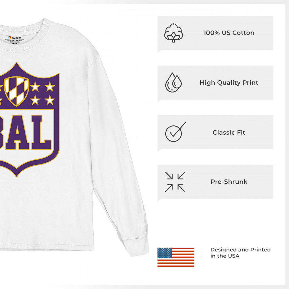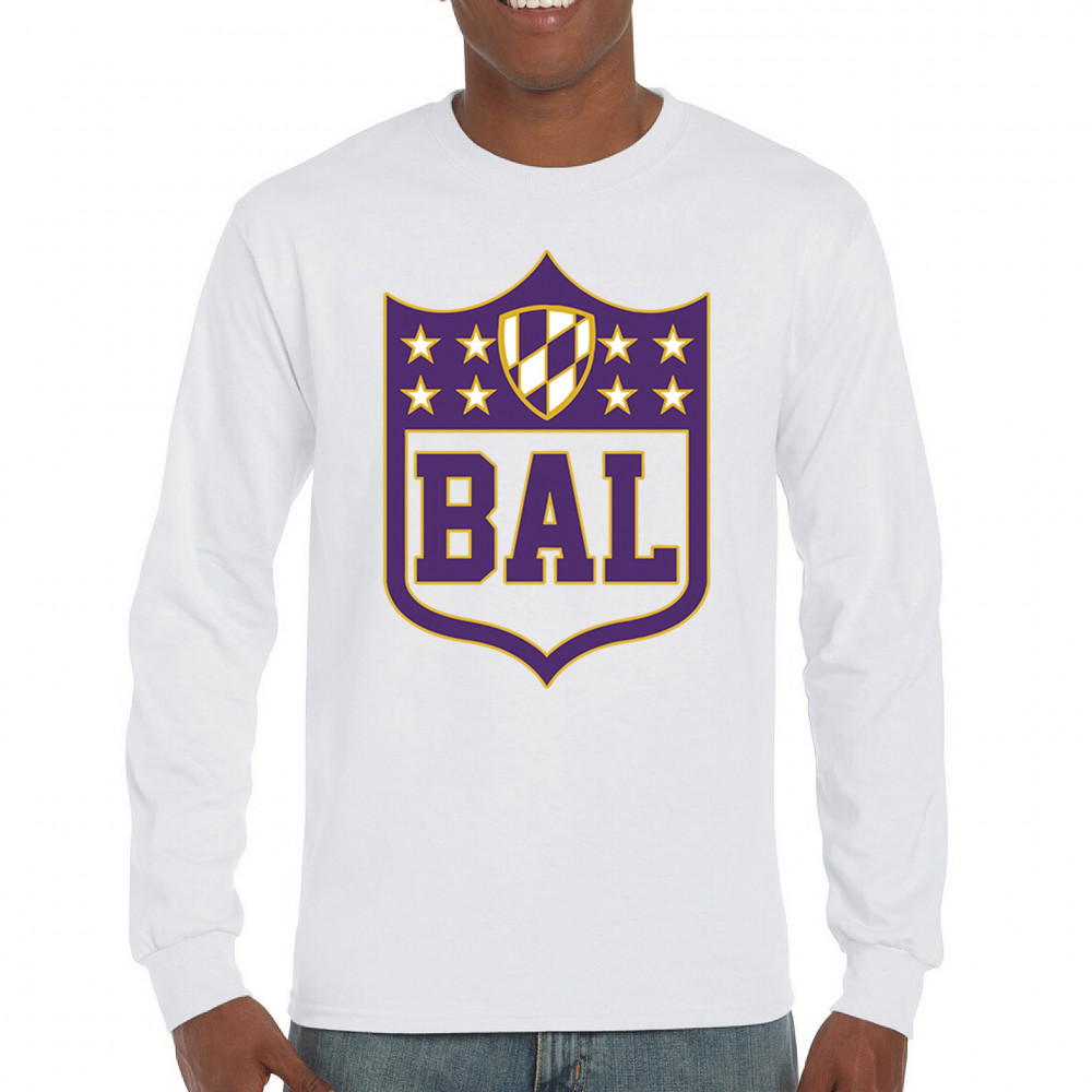 Celebrate your Baltimore pride with this bold BAL shield design. Perfect for football season, this Baltimore athletic shirt blends retro Baltimore football shirt style with collegiate energy. From tailgate party Baltimore tees to vintage BAL sports shirts, it’s built for fans who thrive on touchdown vibes, football culture, and Baltimore city pride. A shield logo Baltimore shirt every fan will love.
