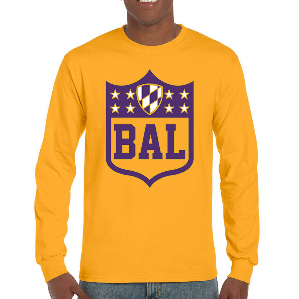Celebrate your Baltimore pride with this bold BAL shield design. Perfect for football season, this Baltimore athletic shirt blends retro Baltimore football shirt style with collegiate energy. From tailgate party Baltimore tees to vintage BAL sports shirts, it’s built for fans who thrive on touchdown vibes, football culture, and Baltimore city pride. A shield logo Baltimore shirt every fan will love.