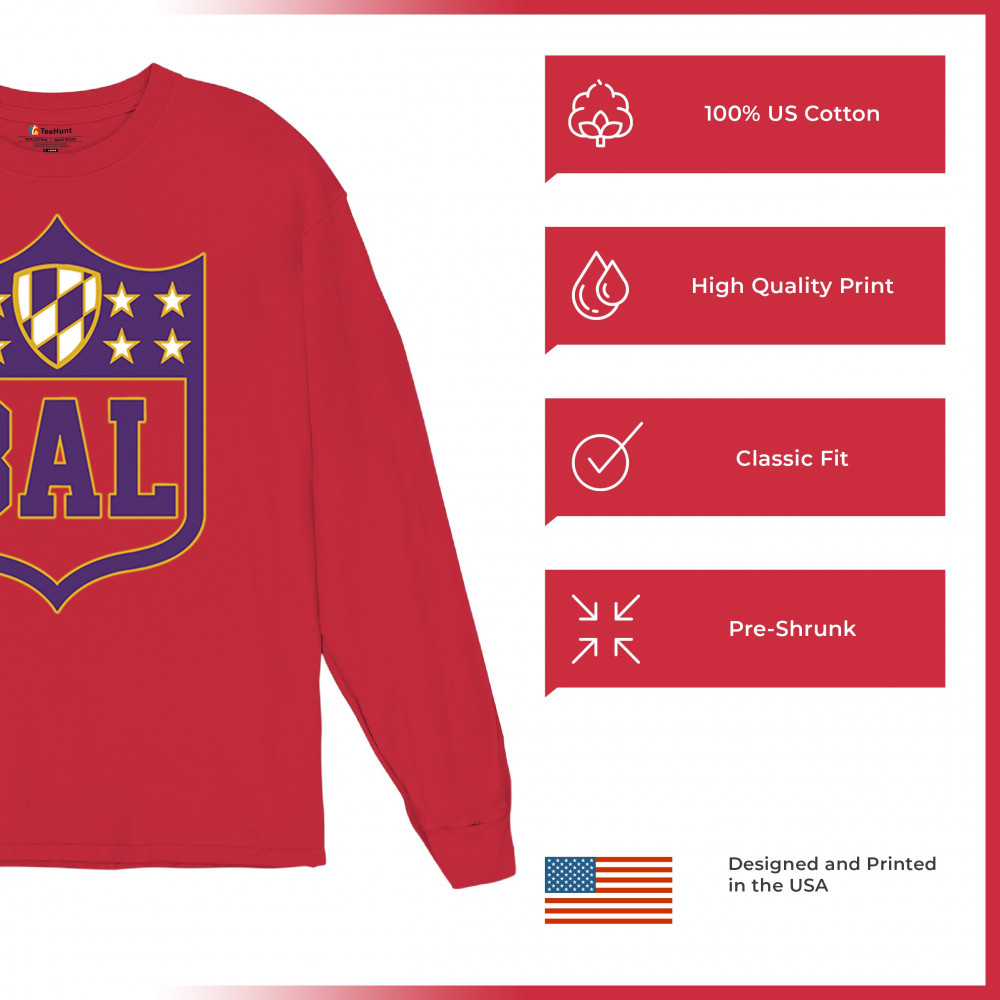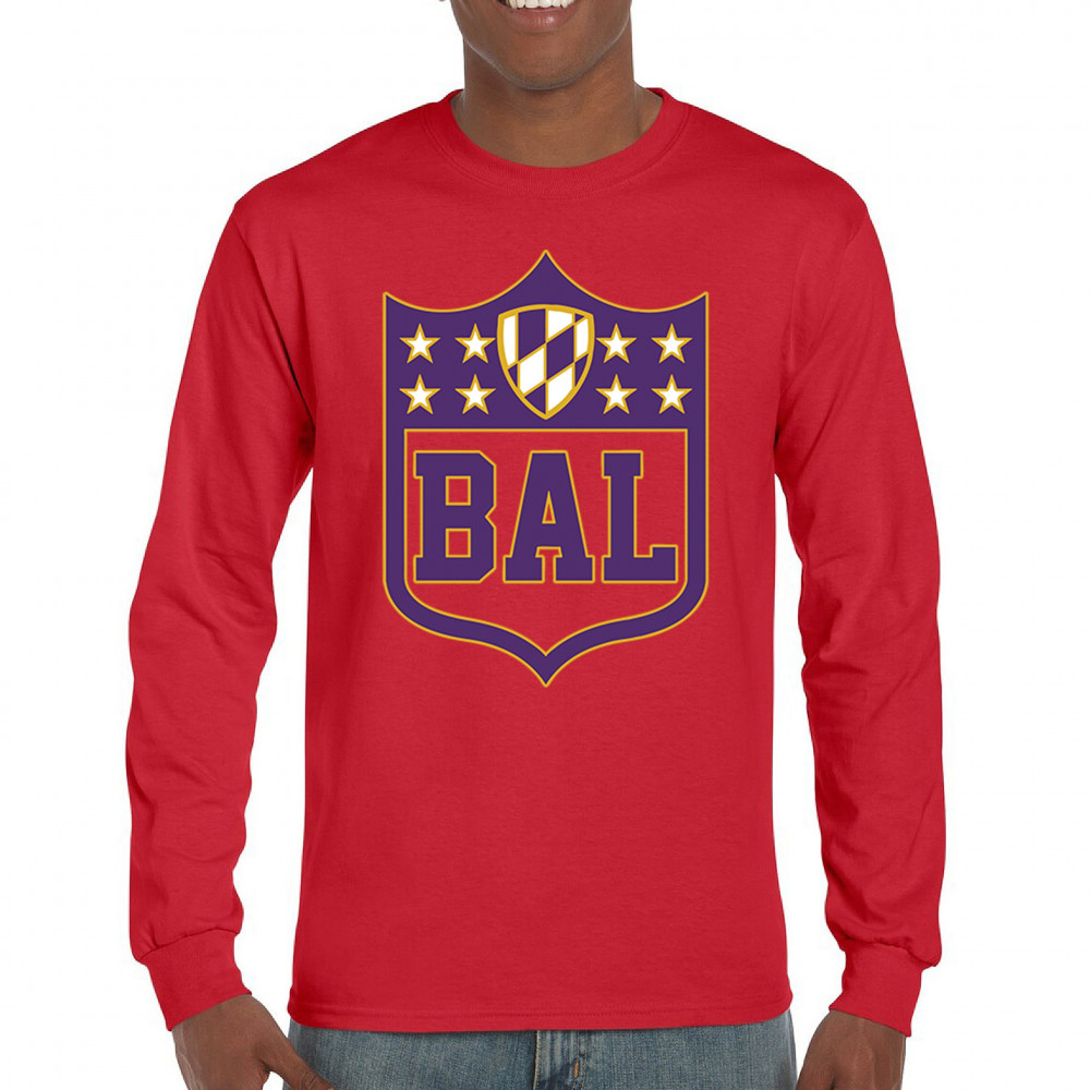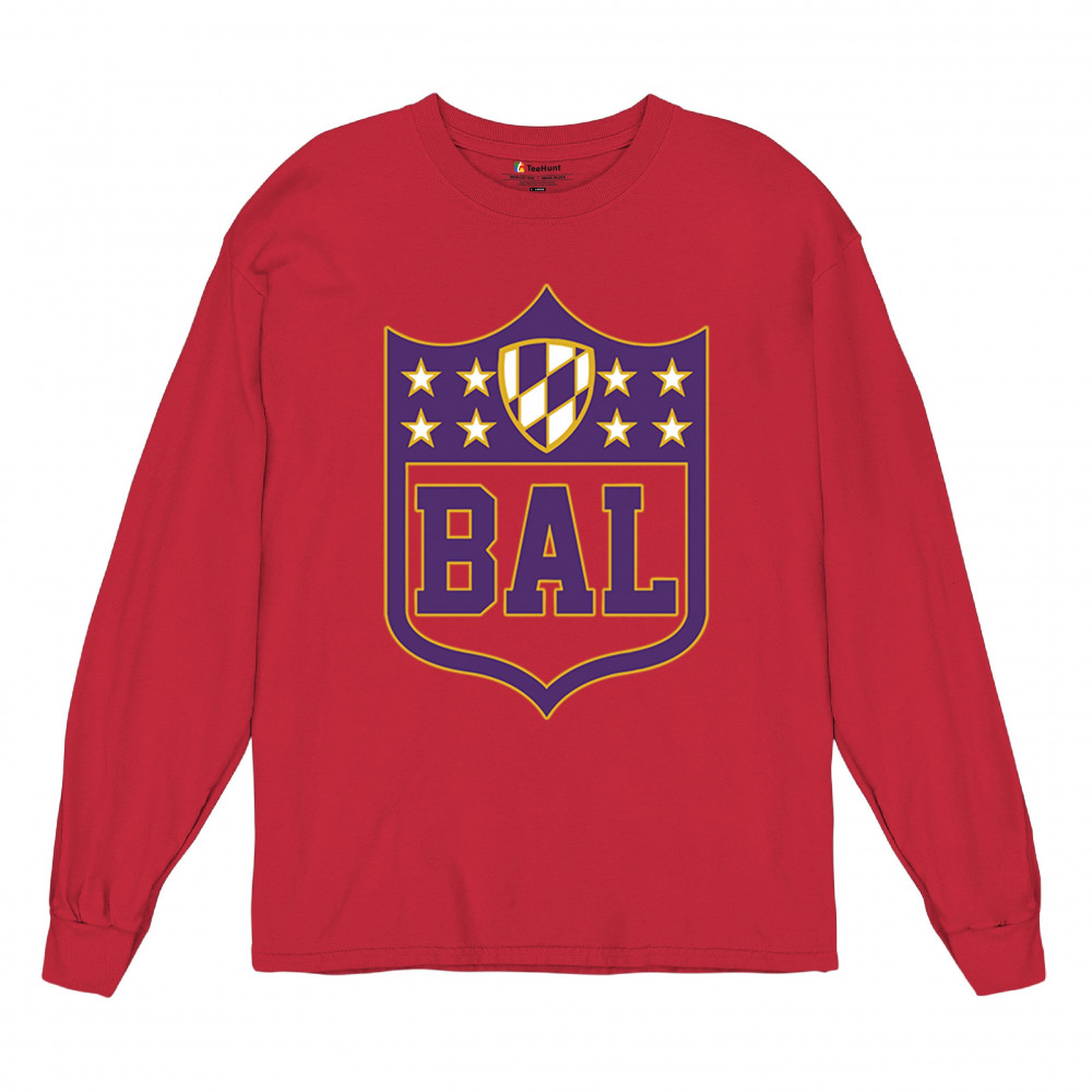 Celebrate your Baltimore pride with this bold BAL shield design. Perfect for football season, this Baltimore athletic shirt blends retro Baltimore football shirt style with collegiate energy. From tailgate party Baltimore tees to vintage BAL sports shirts, it’s built for fans who thrive on touchdown vibes, football culture, and Baltimore city pride. A shield logo Baltimore shirt every fan will love.