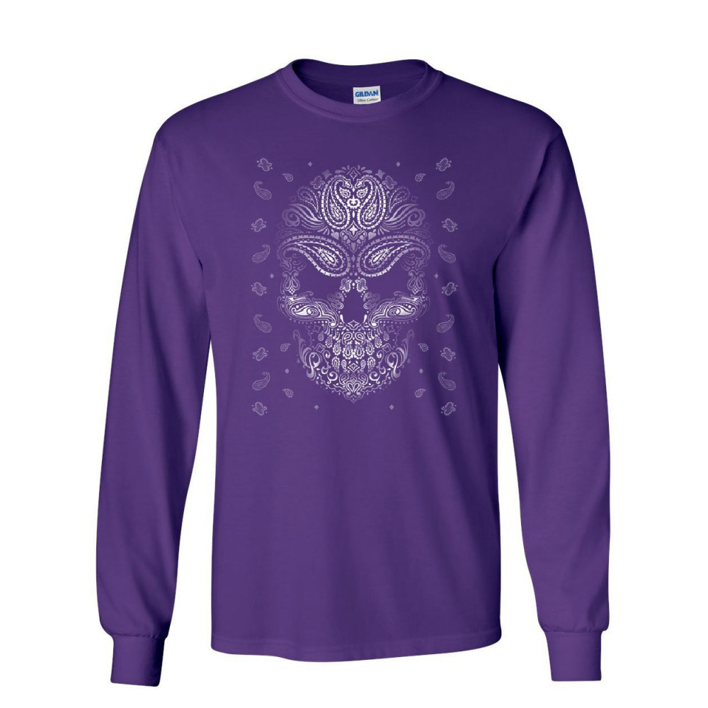 BANDANA SKULL FACE long sleeve t-shirt gangsta badass swag urban skeleton tee purple