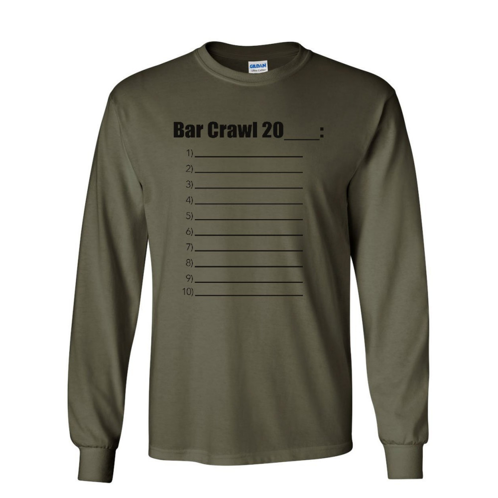 BAR CRAWL 20__ CHECK LIST long sleeve t-shirt drinking college beer booze tee military green