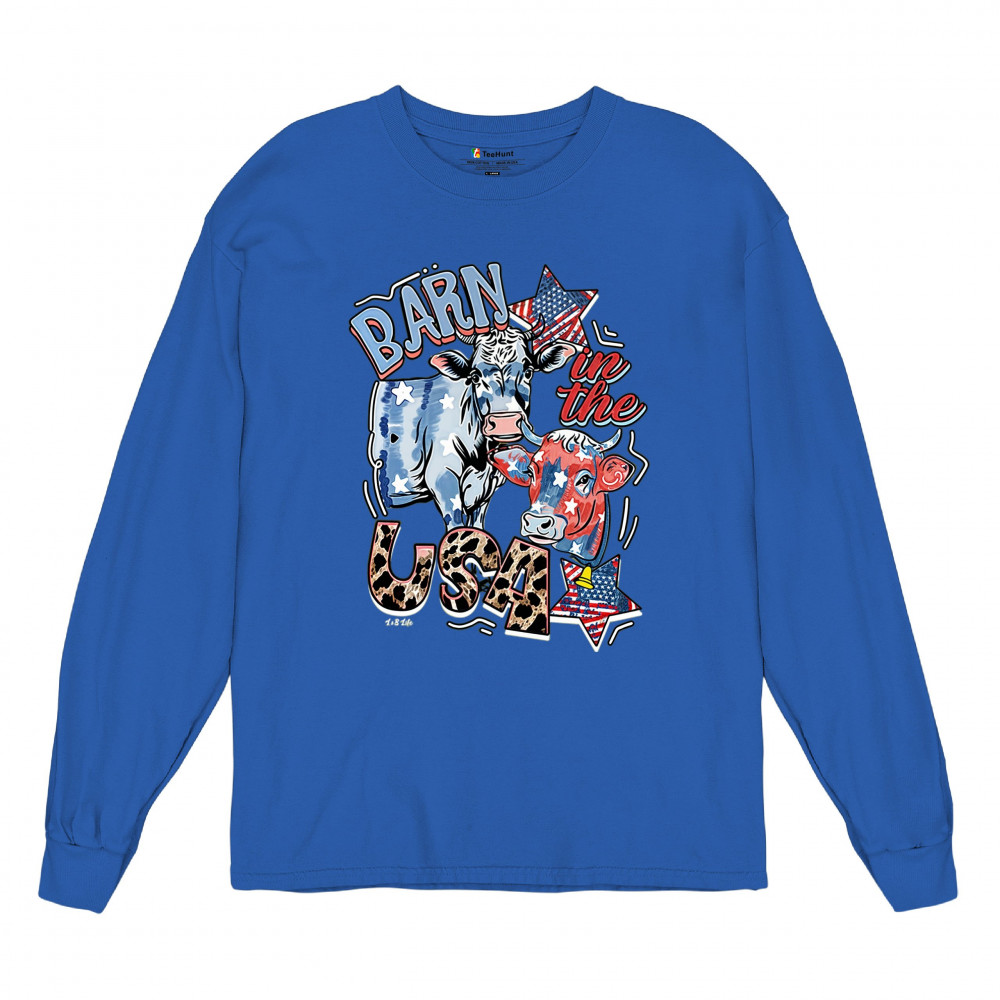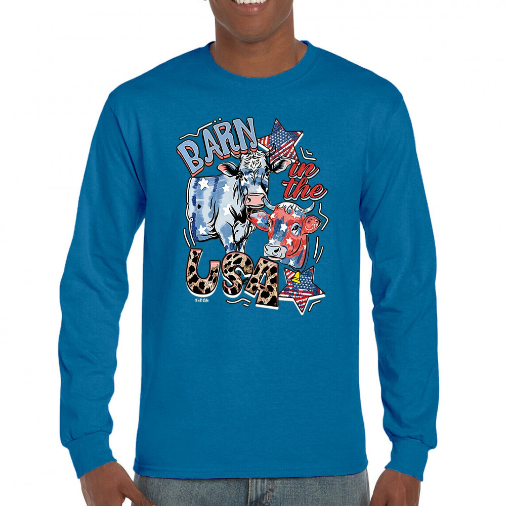 Celebrate American farming and patriotic spirit with our playful "Barn in the USA" design, a blend of whimsy and pride.