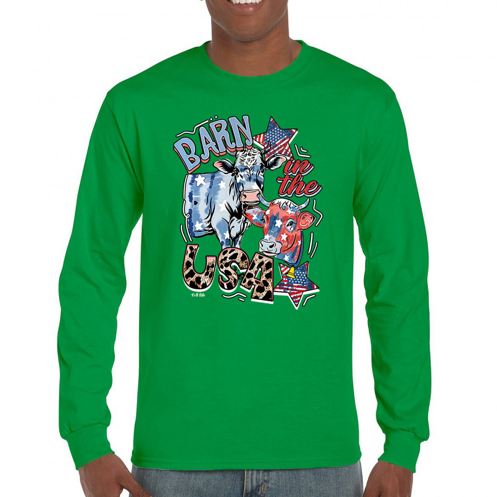 Celebrate American farming and patriotic spirit with our playful "Barn in the USA" design, a blend of whimsy and pride.