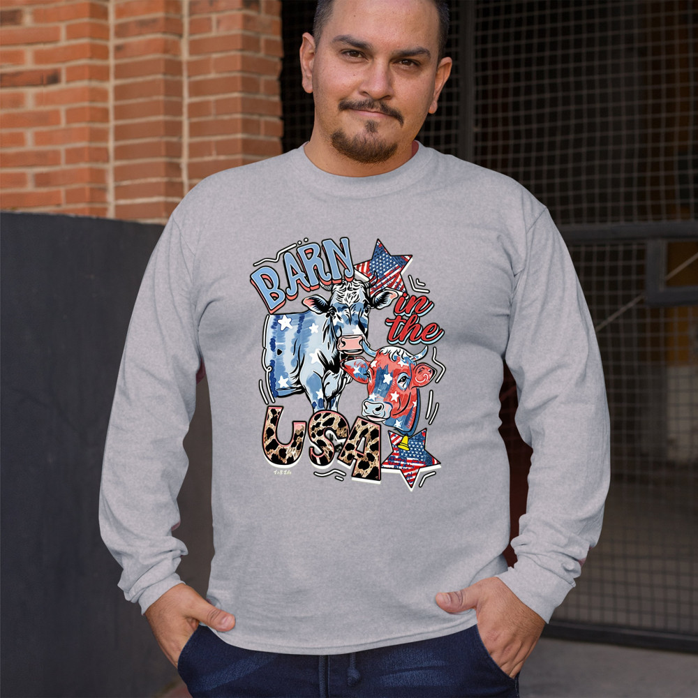 Celebrate American farming and patriotic spirit with our playful "Barn in the USA" design, a blend of whimsy and pride.