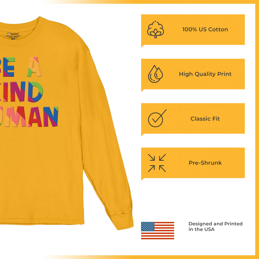 Brighten up your space with our 'Be A Kind Human' design, a vivid call to live with empathy and spread kindness daily.