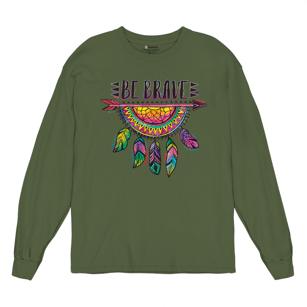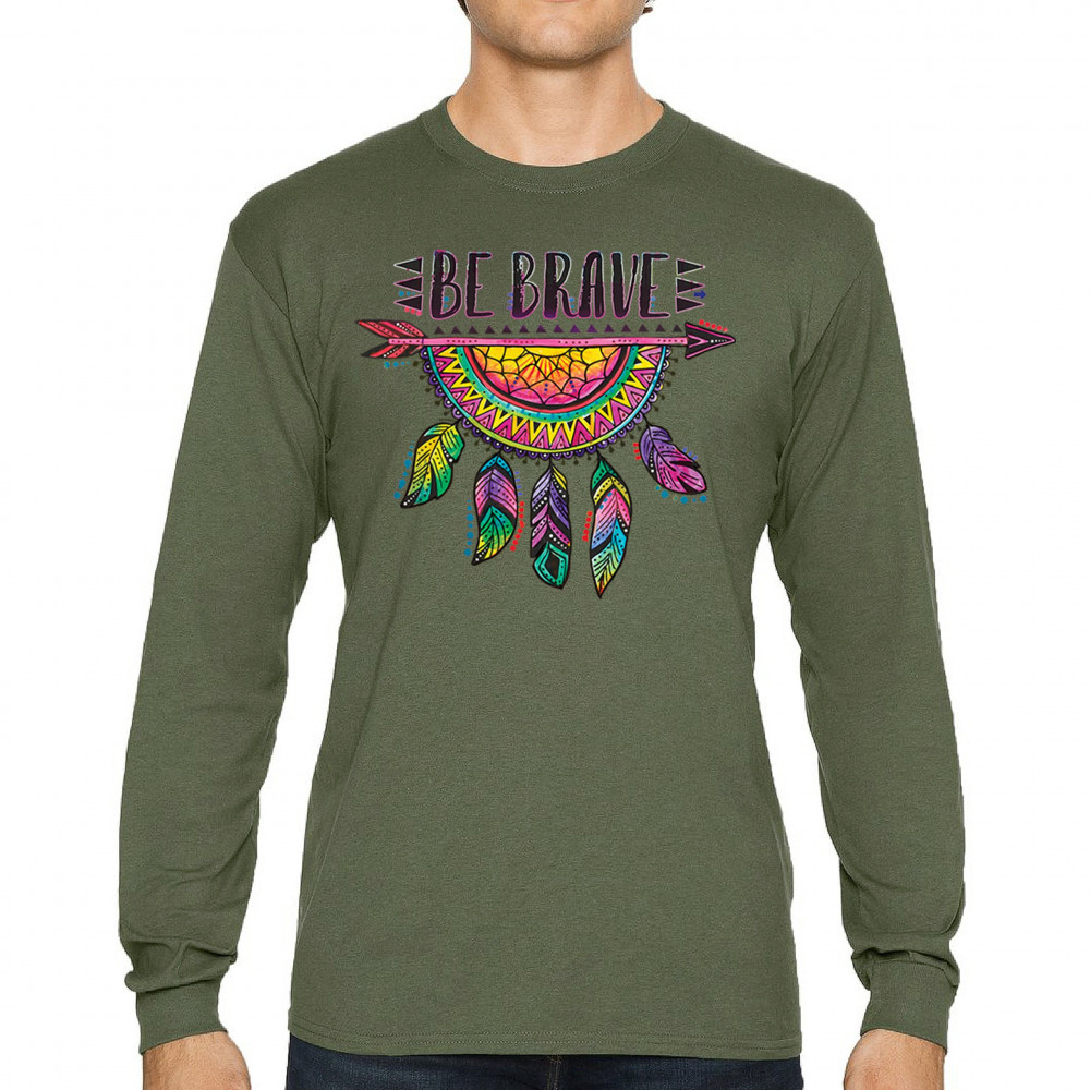 BE BRAVE DREAM CATCHER long sleeve t-shirt dean russo motivation feather military green