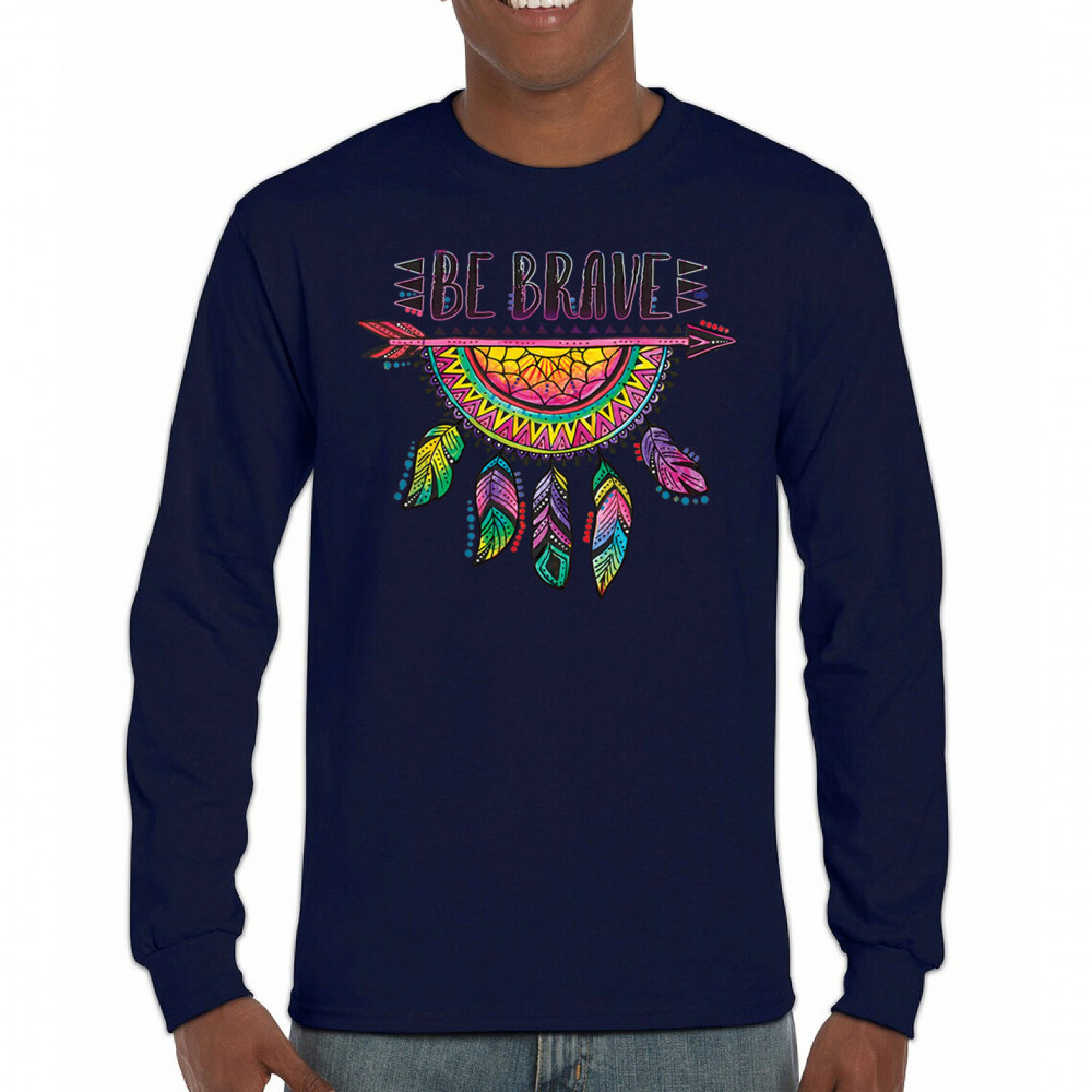 BE BRAVE DREAM CATCHER long sleeve t-shirt dean russo motivation feather navy blue