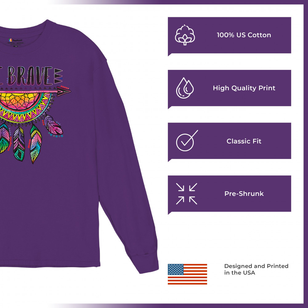 BE BRAVE DREAM CATCHER long sleeve t-shirt dean russo motivation feather purple