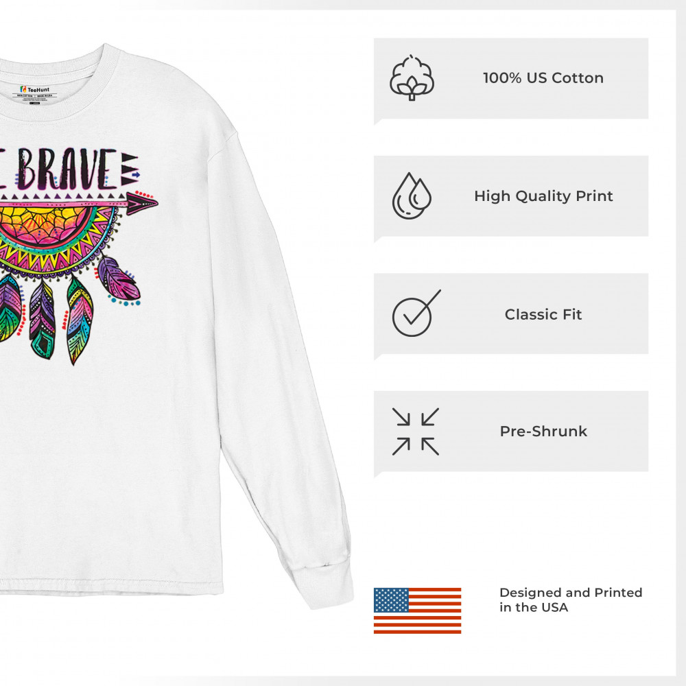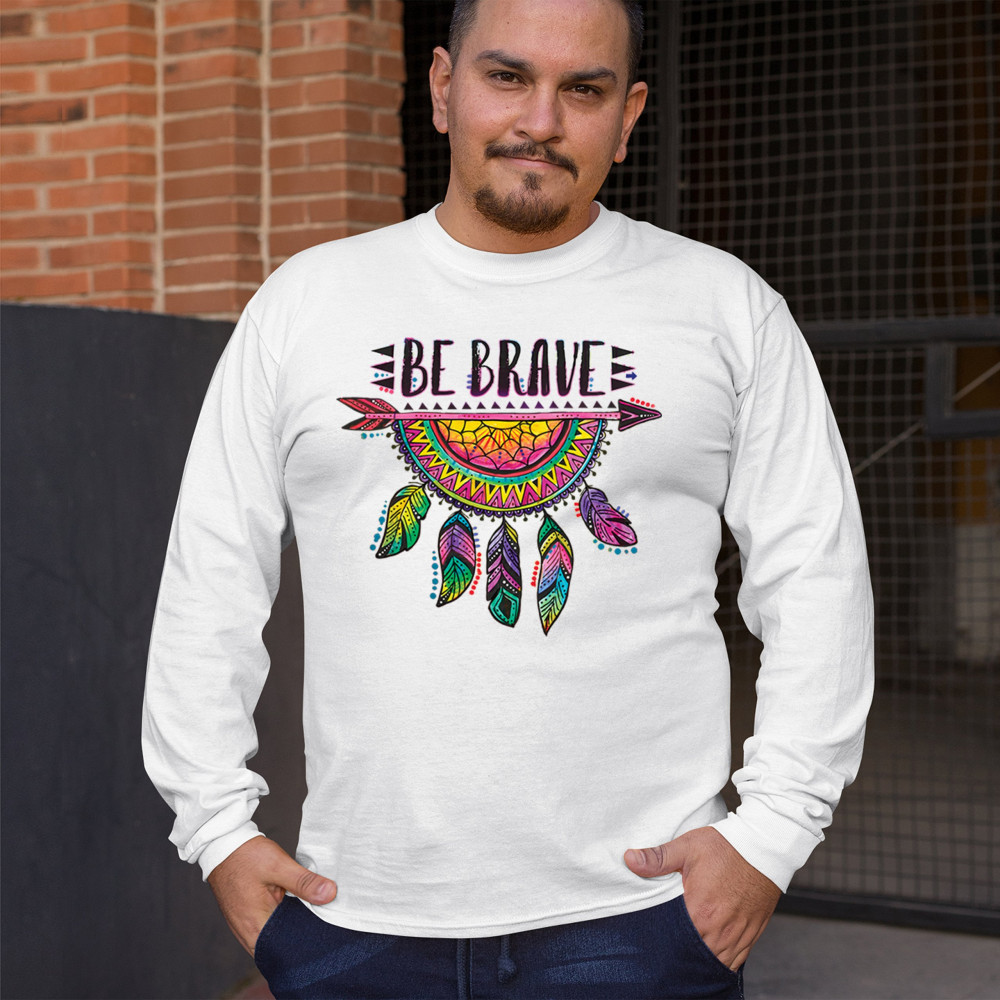 BE BRAVE DREAM CATCHER long sleeve t-shirt dean russo motivation feather white