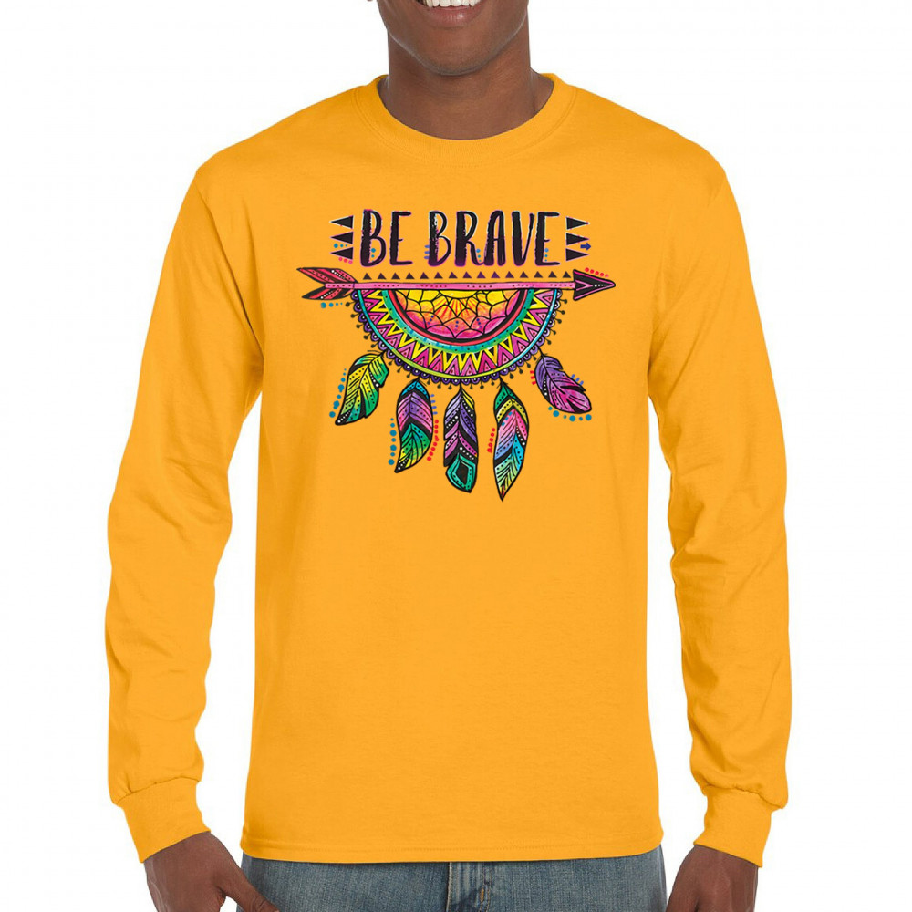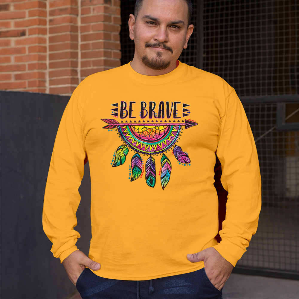 BE BRAVE DREAM CATCHER long sleeve t-shirt dean russo motivation feather yellow