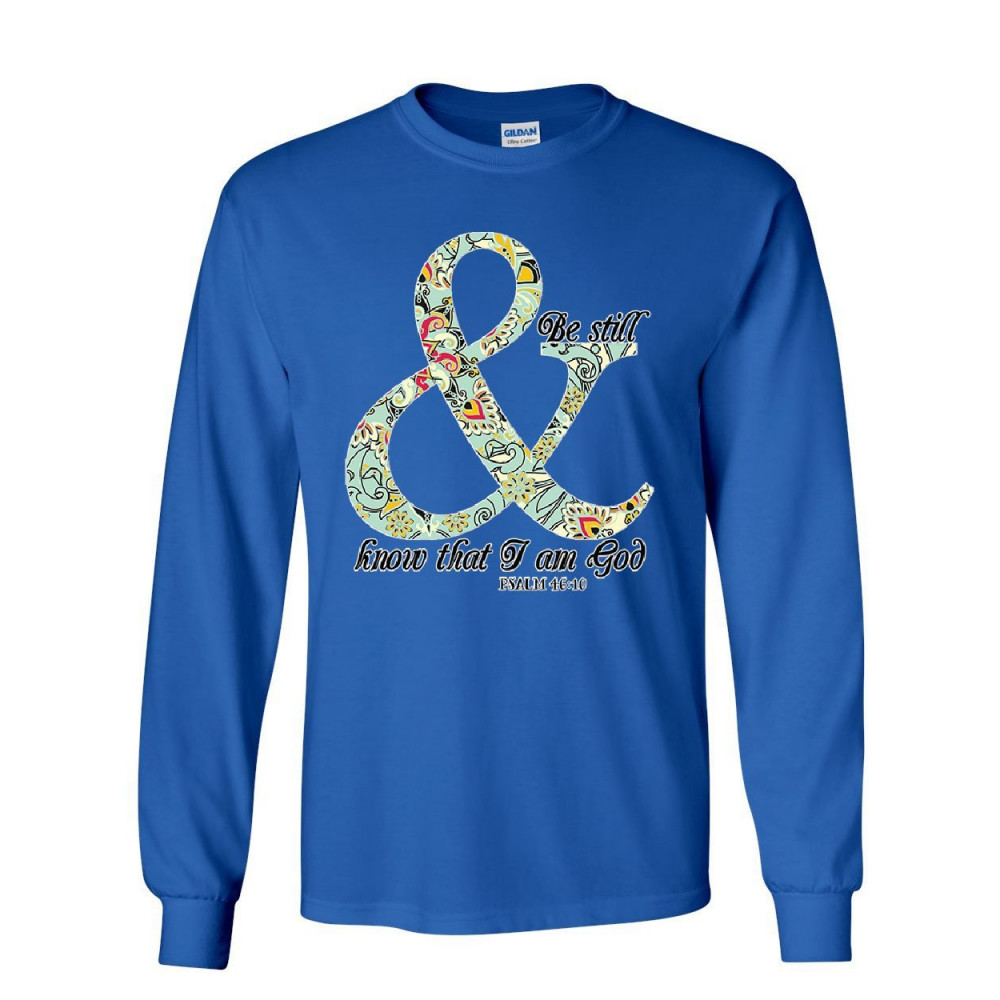 BE STILL & KNOW THAT I AM GOD long sleeve t-shirt religion bible psalm 46:10 tee royal blue