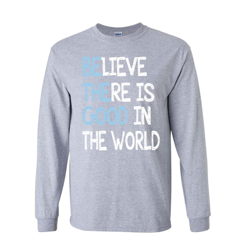 BE THE GOOD long sleeve t-shirt believe there is good in the world inspire tee gray