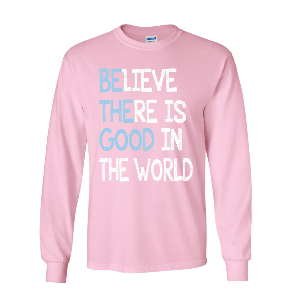 BE THE GOOD long sleeve t-shirt believe there is good in the world inspire tee light pink