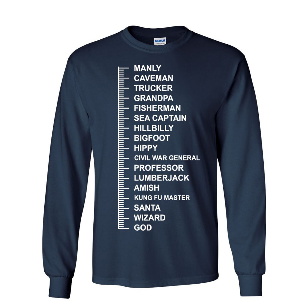 BEARD LENGTH MEASURING long sleeve t-shirt funny beard ruler navy blue