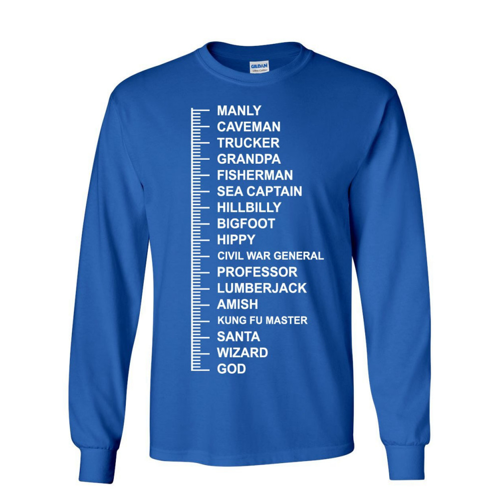 BEARD LENGTH MEASURING long sleeve t-shirt funny beard ruler royal blue