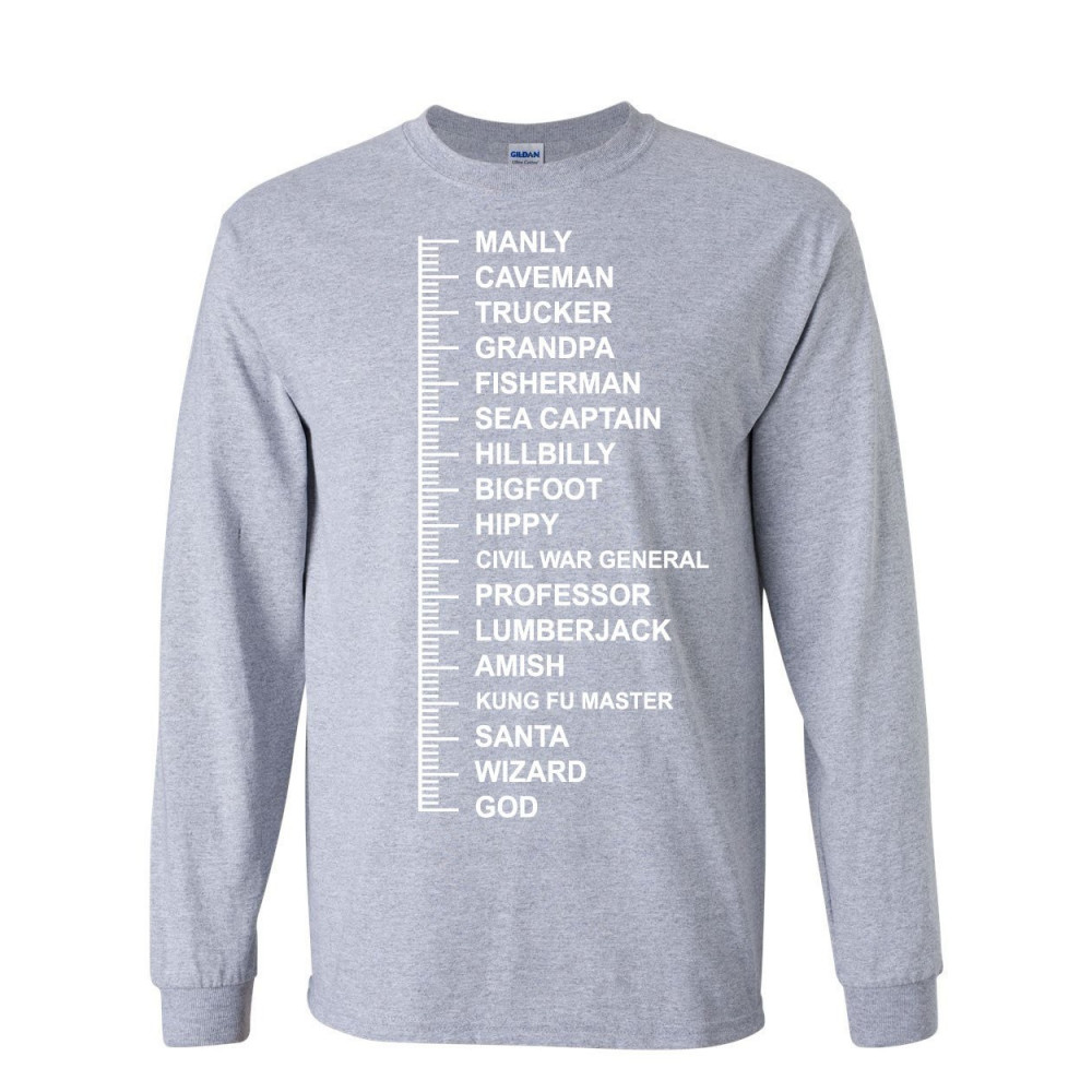 BEARD LENGTH MEASURING long sleeve t-shirt funny beard ruler gray