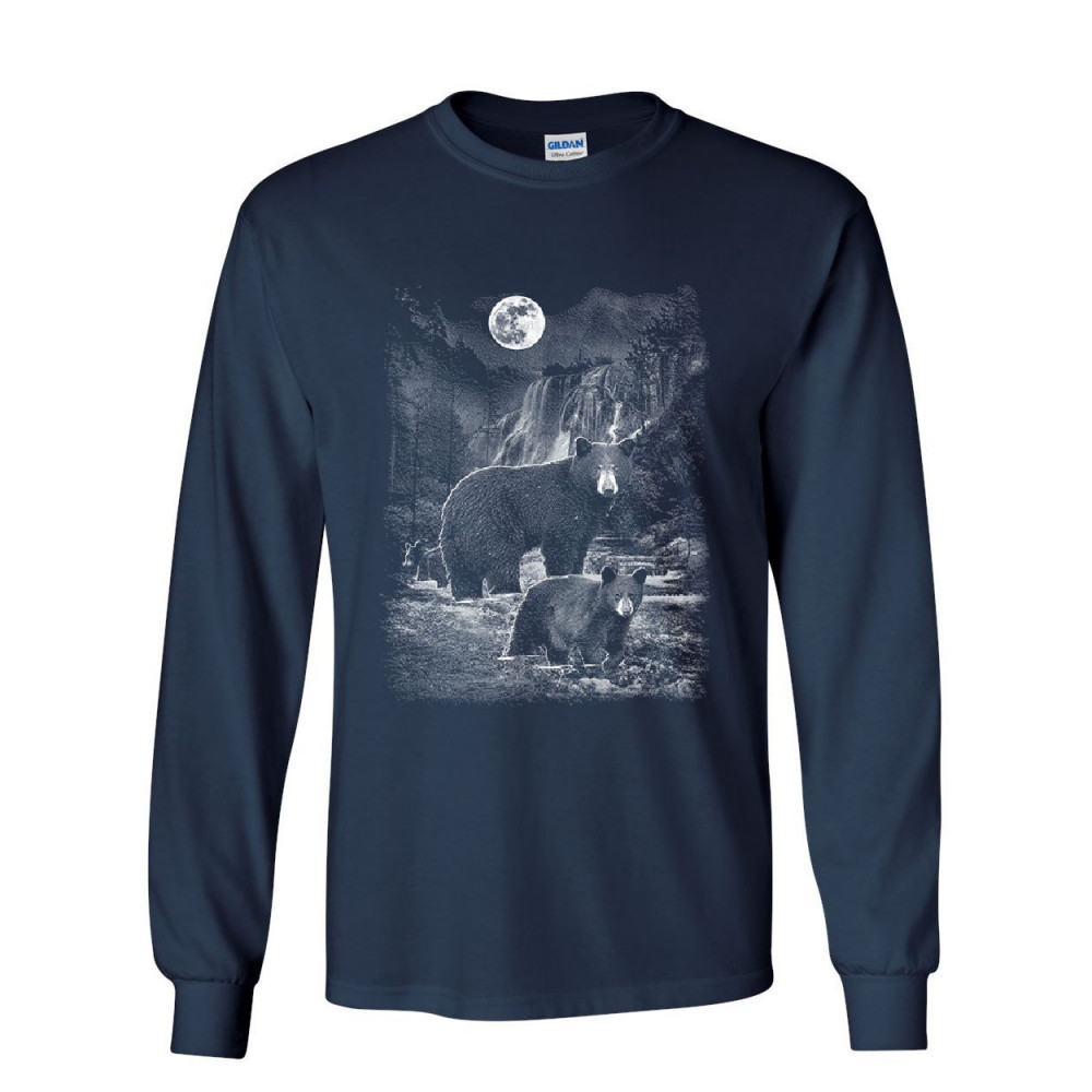 BEARS IN THE NIGHT long sleeve t-shirt brown bear grizzly wilderness animals tee navy blue