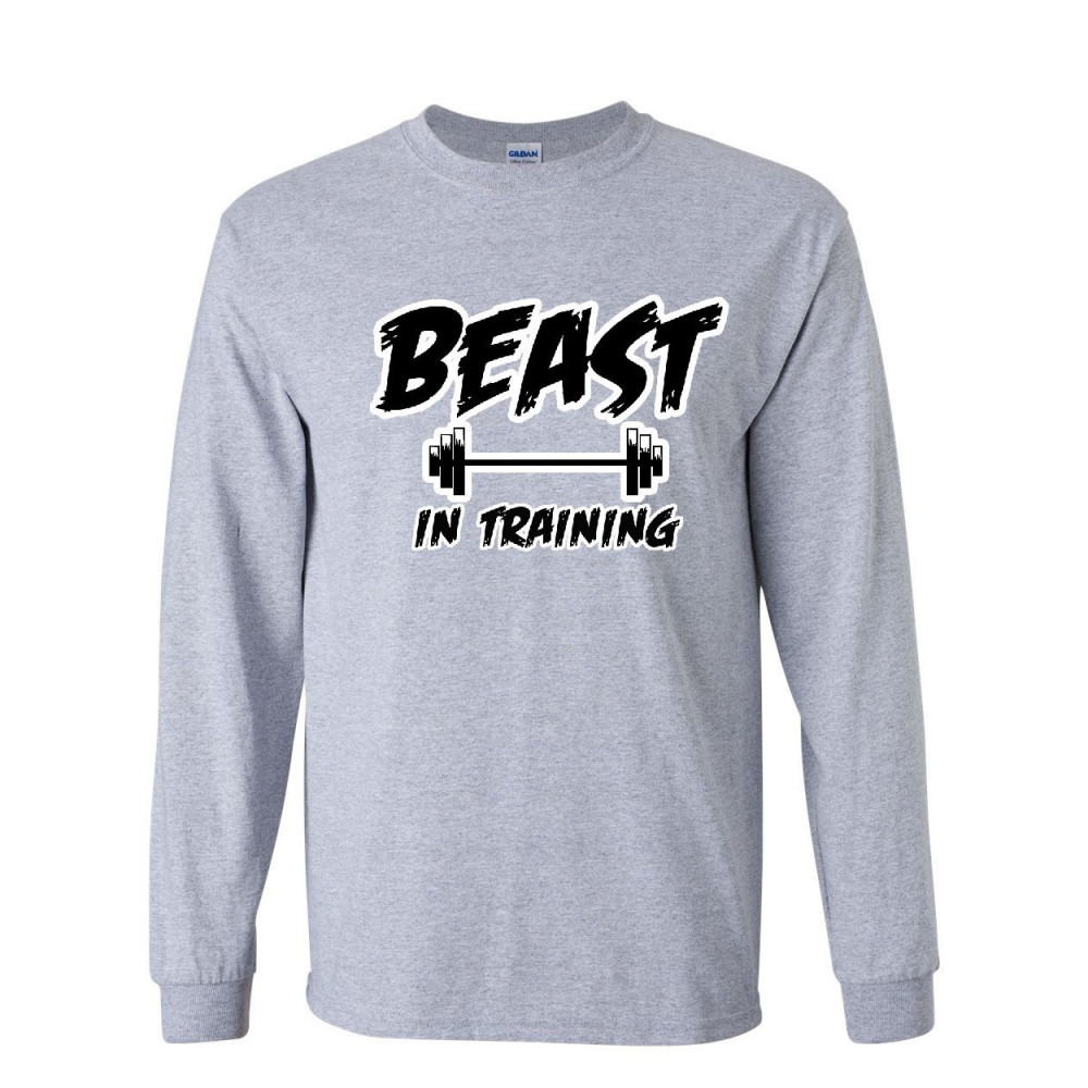 BEAST IN TRAINING long sleeve t-shirt funny gym workout fitness gray