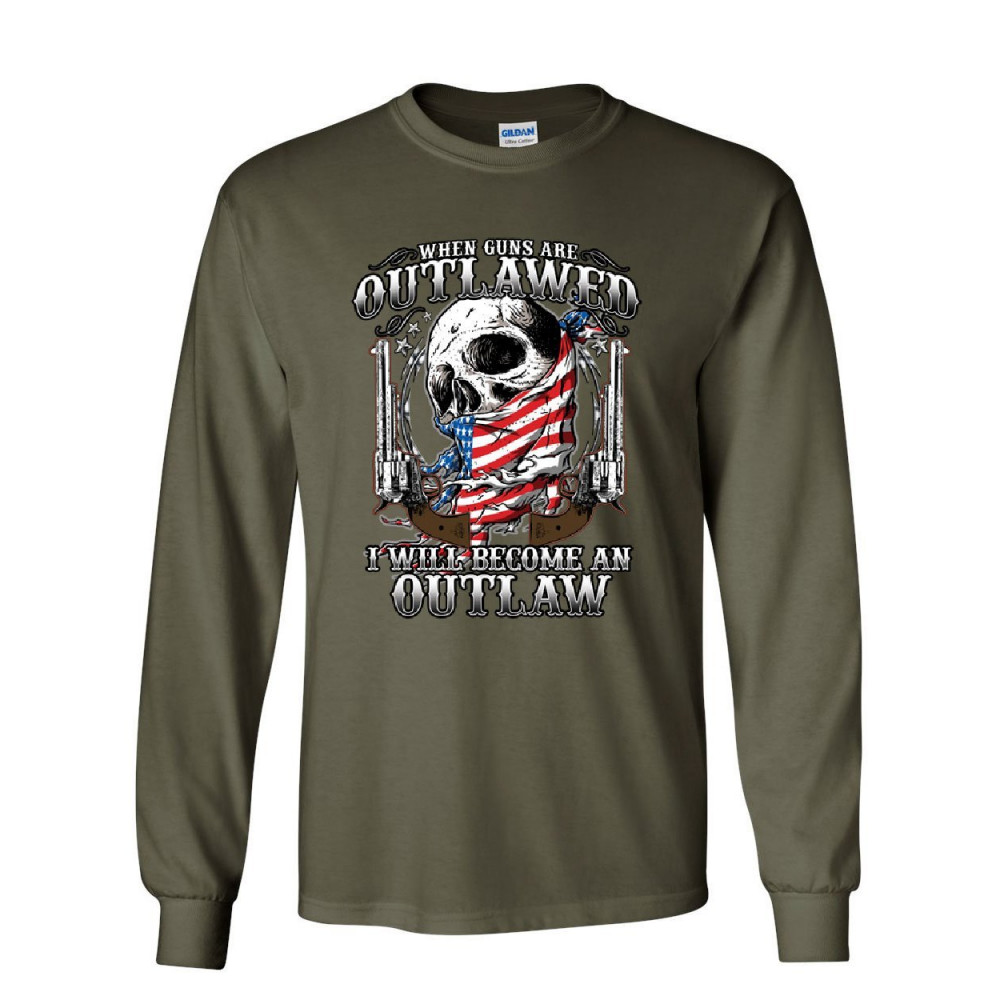 BECOME AN OUTLAW long sleeve t-shirt 2nd amendment right to bear arms skull tee military green