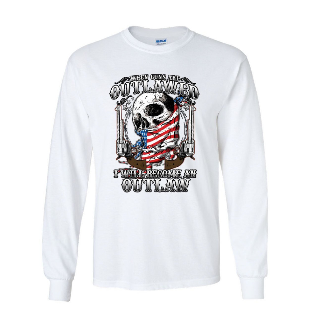 BECOME AN OUTLAW long sleeve t-shirt 2nd amendment right to bear arms skull tee white