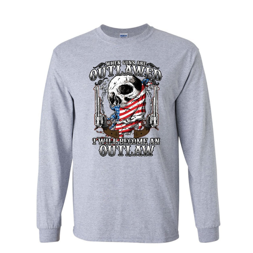 BECOME AN OUTLAW long sleeve t-shirt 2nd amendment right to bear arms skull tee gray