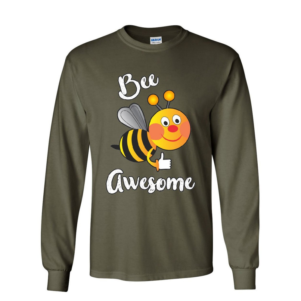 BEE AWESOME long sleeve t-shirt motivational funny cute honey bee be awesome tee military green
