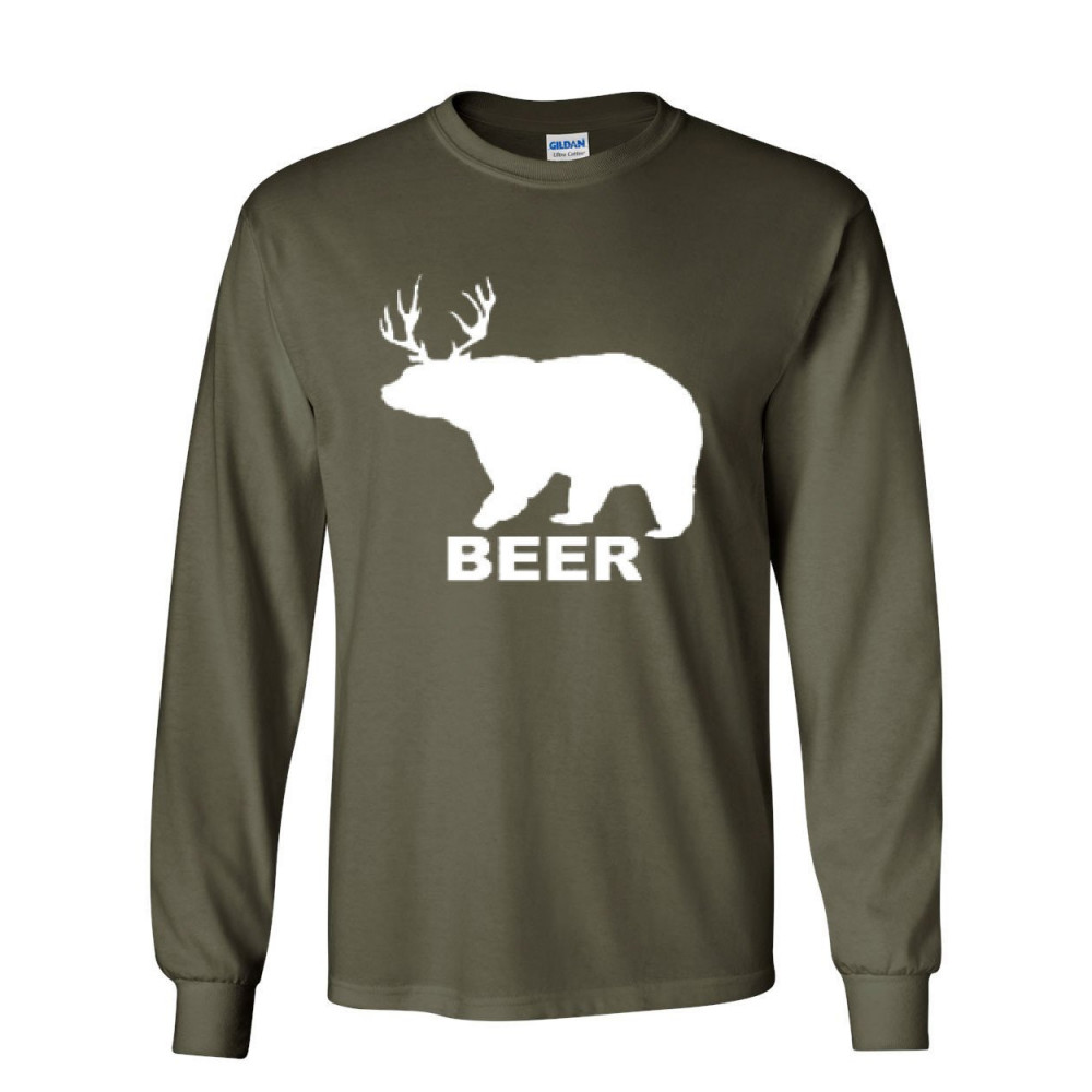 BEAR + DEER = BEER funny drinking long sleeve t-shirt beer military green