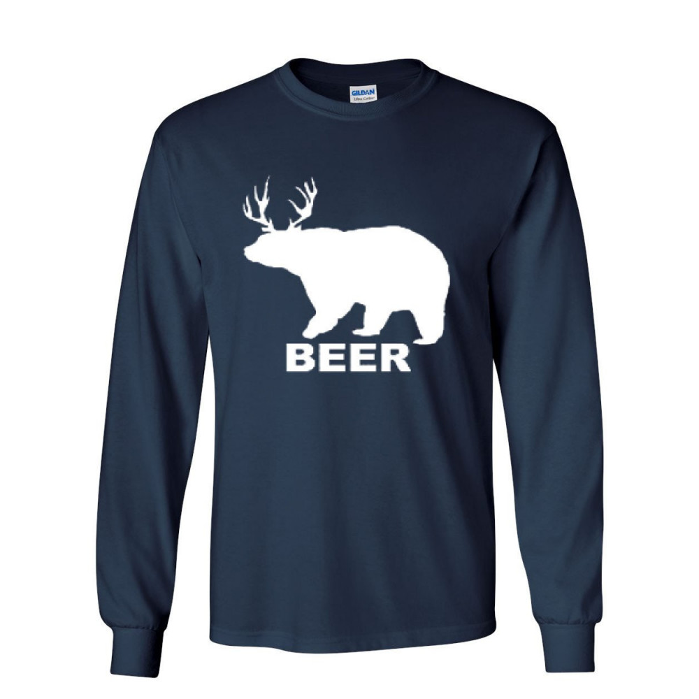 BEAR + DEER = BEER funny drinking long sleeve t-shirt beer navy blue