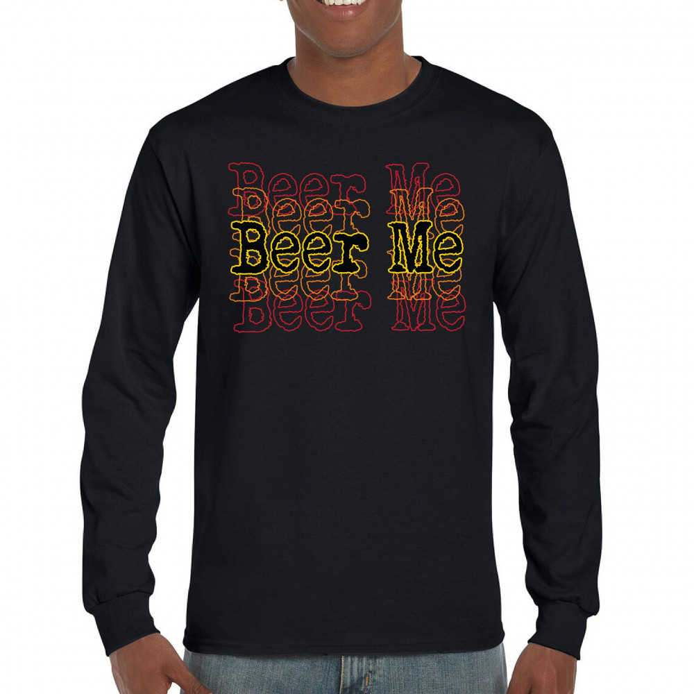 “Beer Me†brings sarcastic drinking humor to life with bold distressed lettering and a grunge-style retro background. Perfect for bar nights, tailgates, beer festivals, or casual party wear. A top pick for beer fans with a loud sense of humor and love for brews.