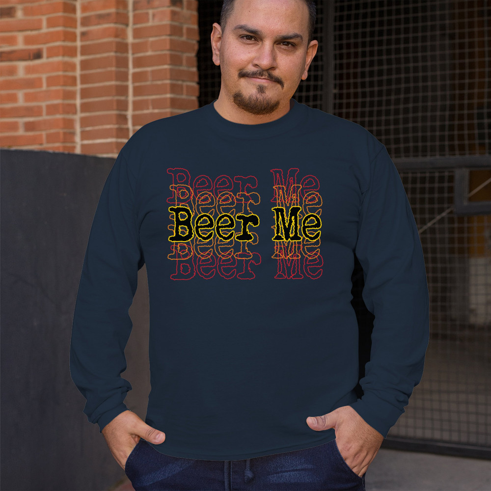 “Beer Me†brings sarcastic drinking humor to life with bold distressed lettering and a grunge-style retro background. Perfect for bar nights, tailgates, beer festivals, or casual party wear. A top pick for beer fans with a loud sense of humor and love for brews.
