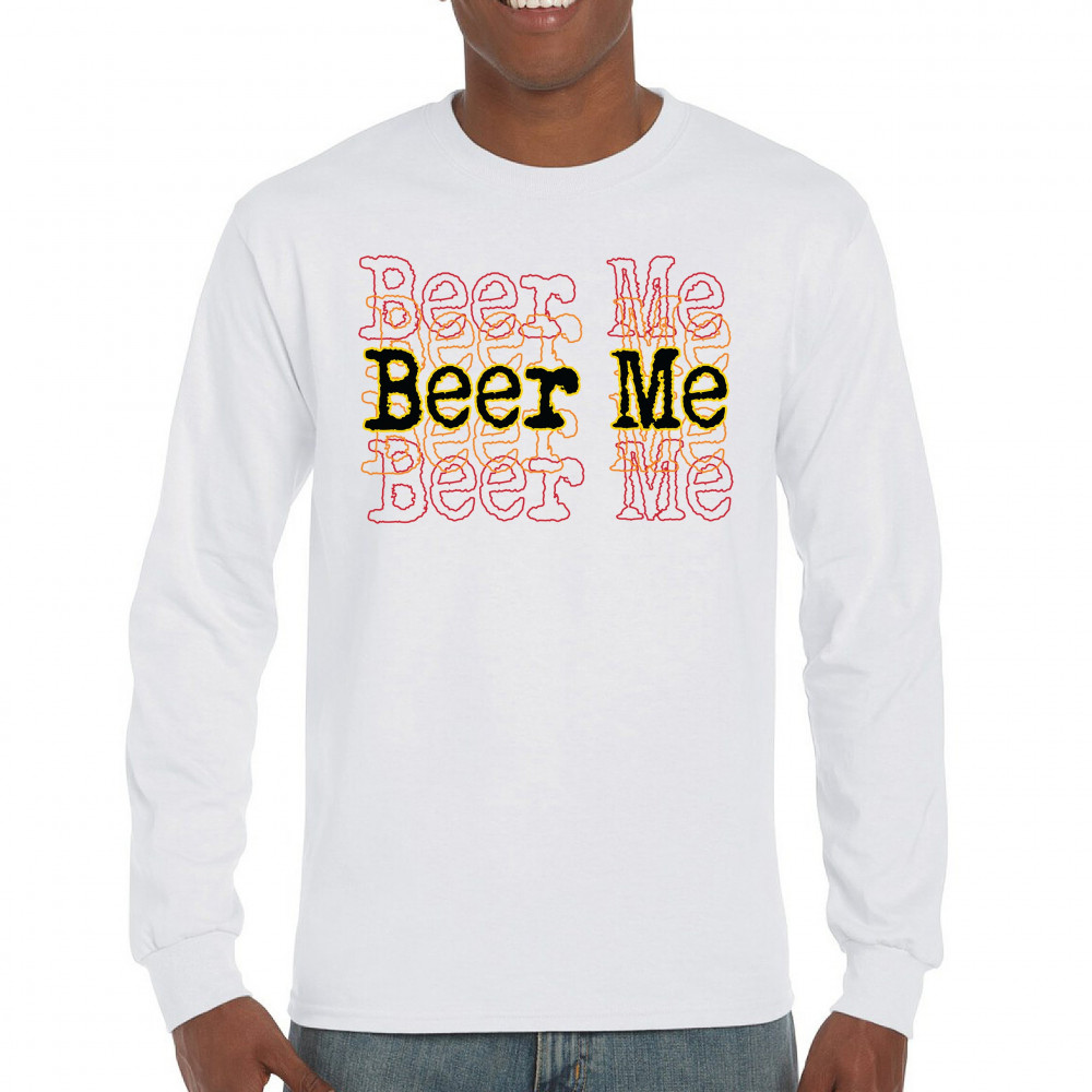 “Beer Me†brings sarcastic drinking humor to life with bold distressed lettering and a grunge-style retro background. Perfect for bar nights, tailgates, beer festivals, or casual party wear. A top pick for beer fans with a loud sense of humor and love for brews.
