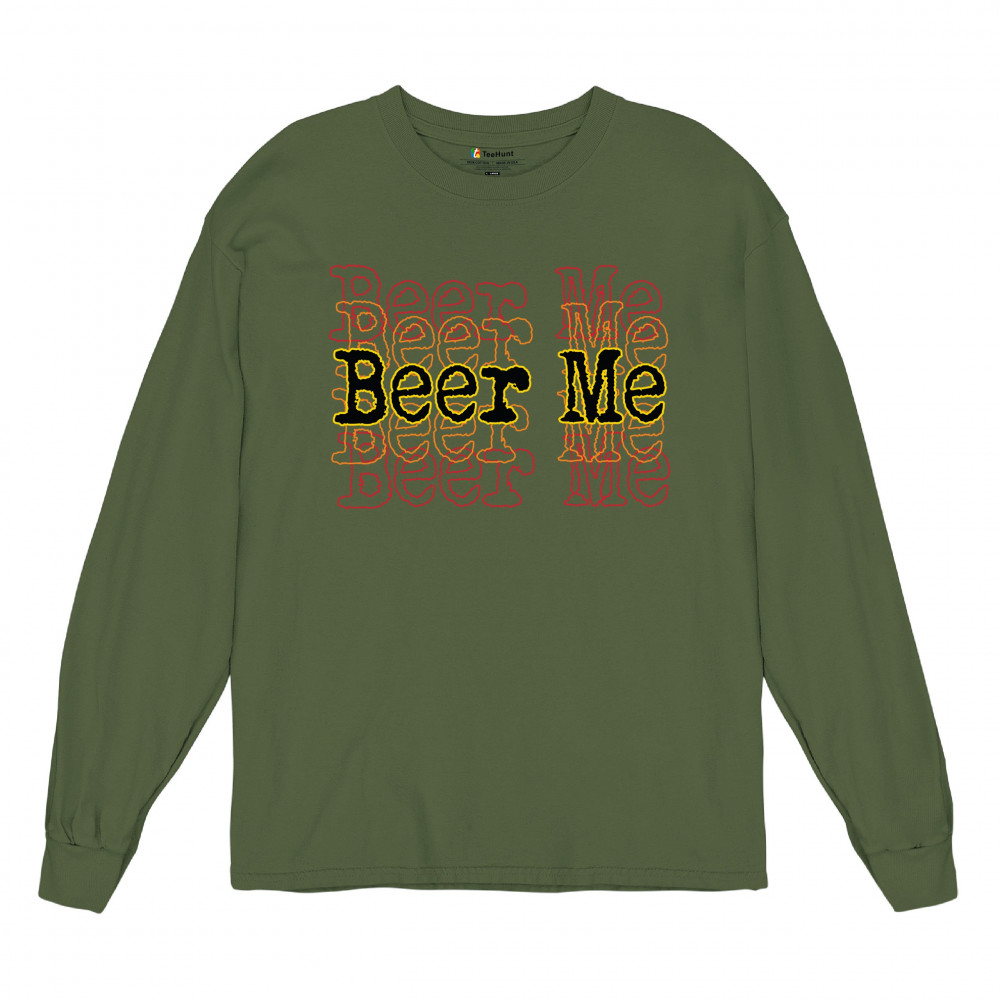 “Beer Me†brings sarcastic drinking humor to life with bold distressed lettering and a grunge-style retro background. Perfect for bar nights, tailgates, beer festivals, or casual party wear. A top pick for beer fans with a loud sense of humor and love for brews.