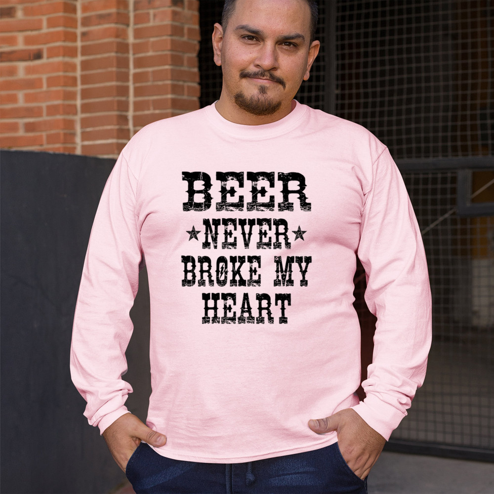 Beer Never Broke My Heart brings funny, great value style for beer lovers—perfect for bar crawls, backyard BBQs, and dad gifts.