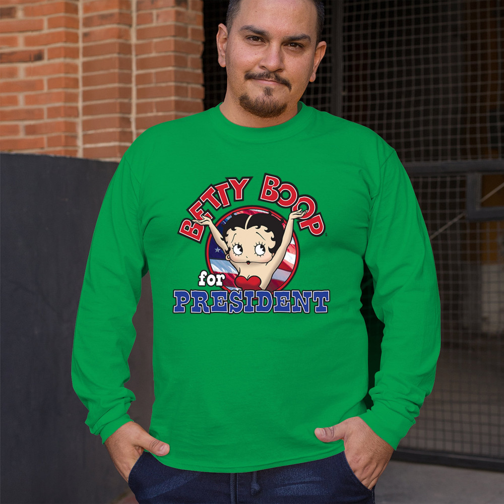 Show your playful side with the Betty Boop for President shirt! Perfect for cartoon lovers and fans of unique, humorous designs. Ideal gift for all occasions.