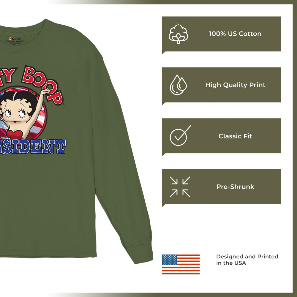 Show your playful side with the Betty Boop for President shirt! Perfect for cartoon lovers and fans of unique, humorous designs. Ideal gift for all occasions.